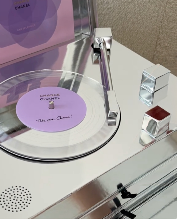 Conception et fabrication du vinyl miroir d’Angèle contenant “A Little More”, une chanson inédite de l’artiste pour la sortie du parfum « Chance Eau Splendide »